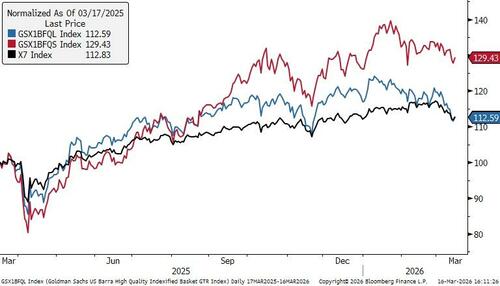The underperformance of Quality has been driven by the strong outperformance of the short leg