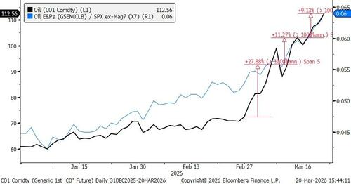 A choppy week ended with the SPX down ~2% and now below the 200-day moving average (down ~6% MTD), and Brent crude oil now at $112 ($103 last wk, $92 week prior and $72.48 on Feb 27th).