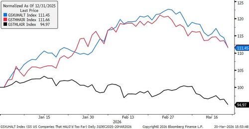 Equities that have “HALO’d too far” have moved in-line with GS research’s High Asset Intensity basket (GSTHHAIR):