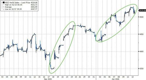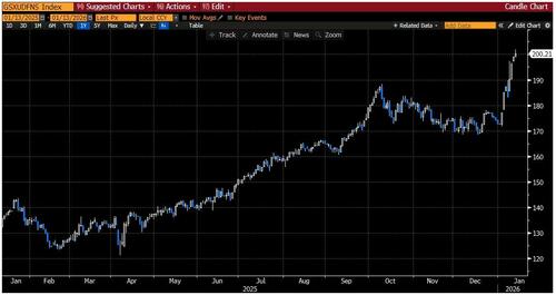 Following from there, precious metals have begun 2026 where they left off in 2025: screaming higher. whether this is a story of central bank demand, or worries about global fiscal largess, or geopolitical sparks, the market speaks for itself: gold +7% ... silver +27%.