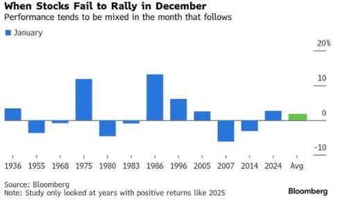 Finally, while January is historically positive, Bloomberg's Tatiana Darie notes that in years when the S&P 500 failed to rally in December, returns were pretty mixed...