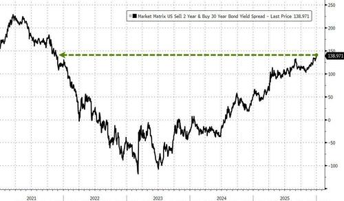 The yield curve steepened once again (now 2s30s at its steepest since Nov 2021)...