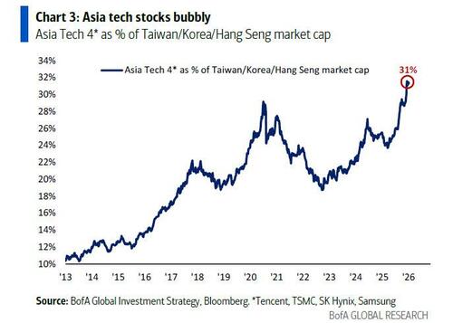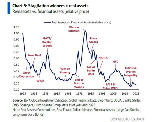 Which bring us back to the top, namely stay long Detroit (Wall Street) and short Davos (Wall Street): long Main St plays, e.g. EM, small cap, banks, REITs, and other assets punished in the first half of the 2020s by big bond bear market; Hartnett expects that 2026 inflation surprises downside as AI chills labor market, and politicians address voter concerns over affordability; it's why Trump aggressive intervention to reduce price of energy, healthcare, credit, housing, electricity via Big Oil, Big Pharma, Big Banks, Big Tech means small & mid-cap best play for "boom" on Main St in run-up to US midterms; plus flip from asset-light to asset-heavy business model suggests major threat to 2020s market leadership of Big Tech/Magnificent 7…