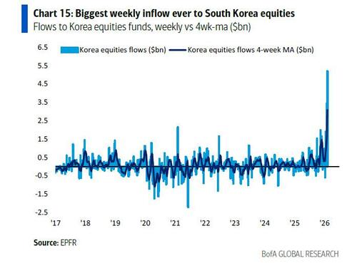 - Korea equities: biggest weekly inflow ever ($5.2bn);