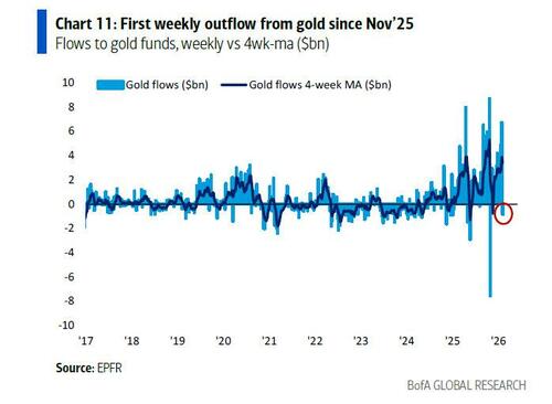 Gold: first weekly outflow since Nov'25 ($0.8bn), note record $3.7bn daily outflow from gold funds on Tues Feb 3rd