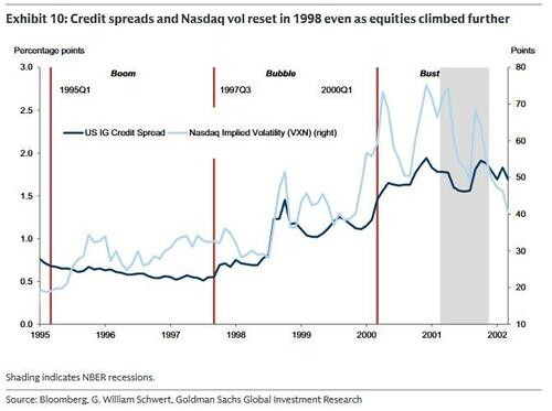 Rate downside should again be protective against that risk, but we think positioning for higher longer-dated equity volatility, and possibly underperformance in credit, is a good late-cycle addition to a long risk portfolio.