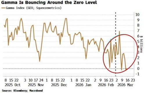 The gamma backdrop is negative across multiple expiries, with the March triple witching option expiration this Friday the biggest pressure point.