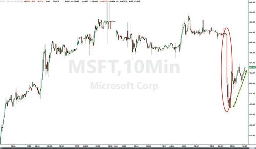 ...as shortly before the cash equity open, futures stumbled following this headline: "*MICROSOFT LOWERS AI SOFTWARE SALES QUOTAS: INFORMATION". MSFT quickly denied and The Information clarified their clickbait headline but MSFT shares did not bounce back much...