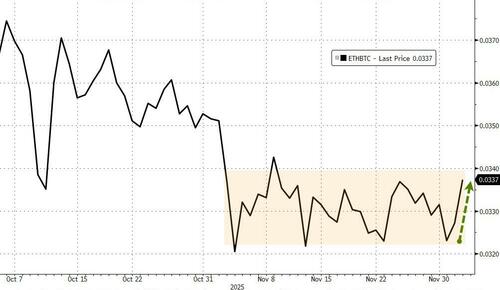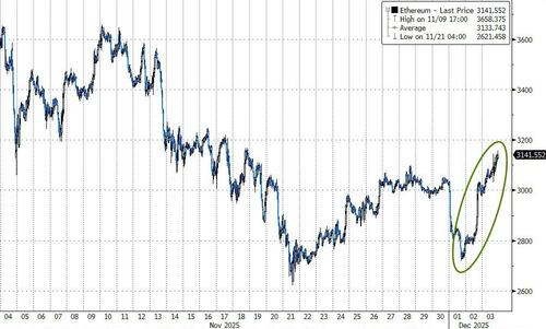 Ethereum notably outperformed bitcoin on the day, rising above $3140