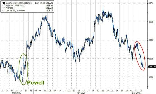 And that encouraged the doves with Dec rate-cut odds steady at 100% but January rising above 30%...