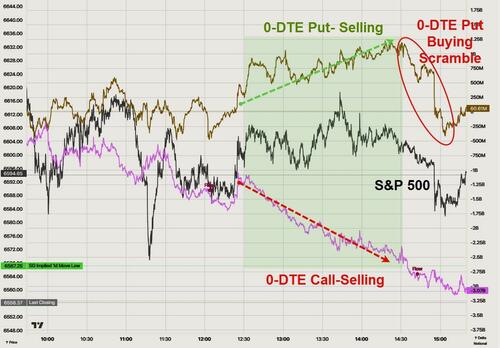 0-DTE traders were selling straddles/strangles during the heart of the day (hoping for some vol compression) but then had to capitulate as stocks rolled over on a resurgence in crude...