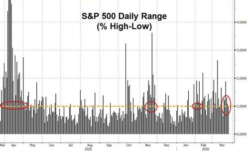 Goldman's traders also noted that the market remains volatile as the S&P has now traded in at least a 1% band for the 6th straight day, just the 4th time in the last yr we’ve seen a streak this long (it was 1yr ago that started a run of 27 straight sessions of at least a 1% S&P intraday move, which also included the entire month of April)