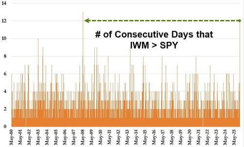 Finally, the "broadening out" trade continues to march on in 2026, with IWM outperforming SPY every one of the 11 trading days so far this year...