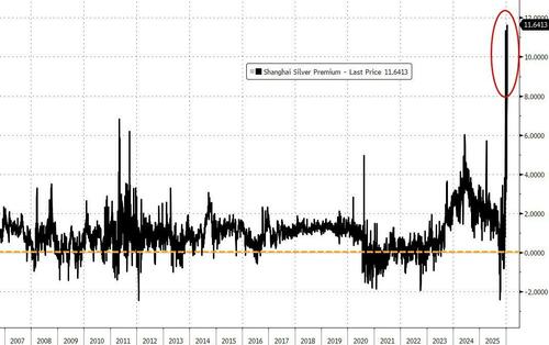 But, before we leave precious metals, we note that the Shanghai silver price premium over Western prices has literally exploded...