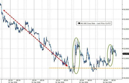 ...but we note that while the Gold/Silver ratio dropped below 50x this week (for the first time since 2012), the end of the week saw gold outperform (modestly)...