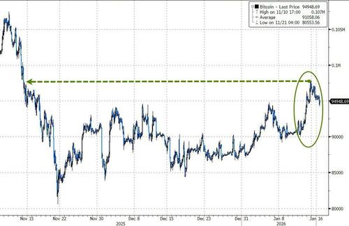 The week was dominated by Trump-initiated headlines - from Iran threats (and then praise), Venezuela discussions, Greenland shenanigans (and tariff threats), Affordability warnings (credit card caps, energy caps, institutional home-buying bans), and Fed Chair flip-flops (Kevin W >> Kevin H, Powell punished) - prompting relatively violent swings in various asset classes (both higher and lower).