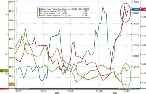 Geopolitical and Trade policy uncertainty have soared while bond and equity risk remains unmoved...