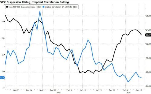 Bloomberg macro strategist, Michael Ball, noted that January’s equity option expiration today looked to be a non-event given the limited gamma shift at the index level, but higher single-stock vol and the potential for higher implied correlations are where the real risk lurks.