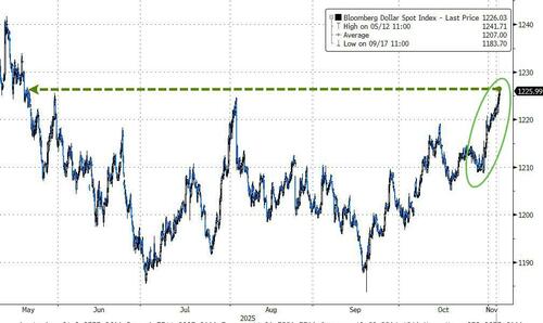 The dollar extended its post-Powell surge (also helped by liquidity demands) to its highest close since mid-May...