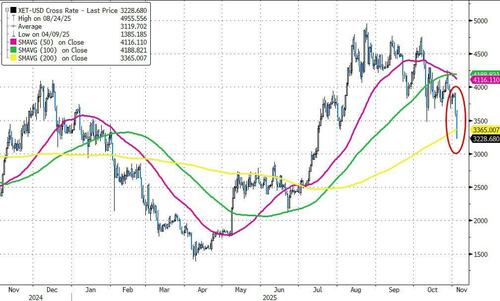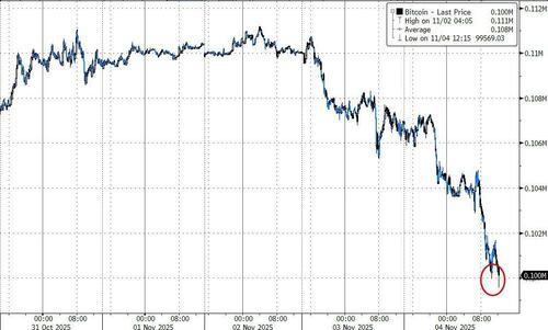 Bitcoin was clubbed like a baby seal, breaking below its 200DMA and then breaking below $100k for the first time since June, not pretty at all...