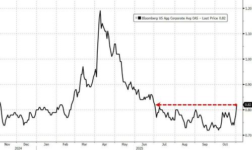 High-grade corporate bond spreads jumped notably in the past few days and are now the widest in months...