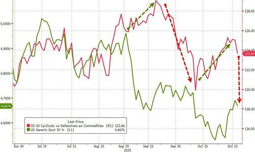 Cyclicals have a long way to fall (again) relative to Defensives to catch down to bond market's views of the world...