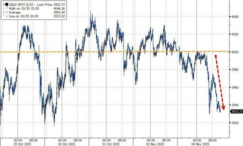 Gold was also monkeyhammered lower today, unable to hold $4000...