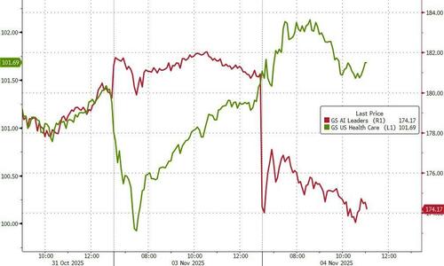 The move to find laggards comes after a month in which the S&P 500 Equal Weight index fell 1% in October, significantly underperforming the cap-weighted S&P 500 index, which climbed over 2% during the same period - all suggesting perhaps that investors may be wary of legging further into the mega-cap Tech trade now that earnings season is largely behind us.