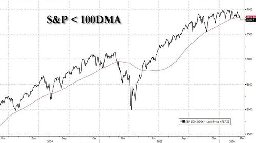 Today's selling pushed the SPX below the critical 100 day moving average (6836) which had served as a key support ever since LIberation Day, when it was last breached, and made sure the market didn't tumble back in November.