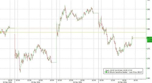 Notable laggards on the day.. Bitcoin Sensitive (GSCBBTC1) tumbled -650bps for obvious reasons: yes, bitcoin tumbled as a result of the broad-based selling, as well as the jump in the USD and 10Y yields.