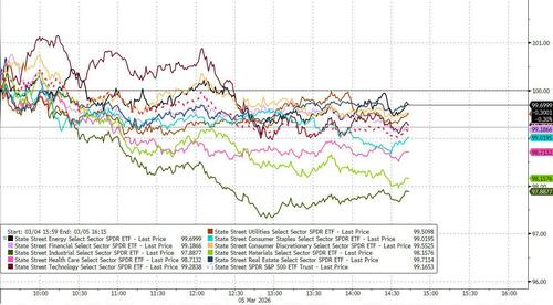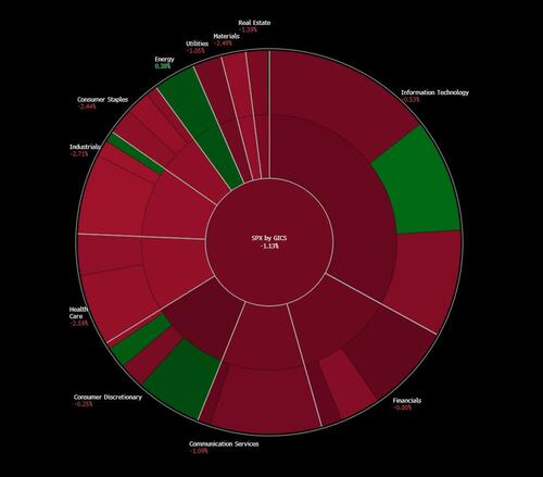 If yesterday was an "everything green" kinda day (albeit with low volume, and even lower liquidity) today was the mirror image as everything sold off (except energy).