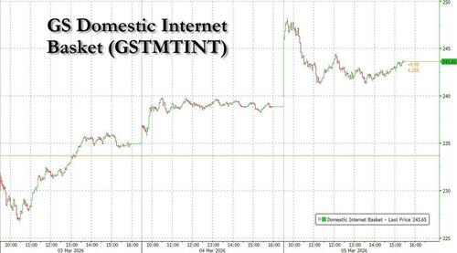 Some other drivers of Software strength according to Goldman: 1) oversold conditions.. 2) stocks stopped going down on bad news - WDAY +25% from post earnings low tick; 3) macro backdrop has grown more supportive of domestic / secular businesses; 4) anthropic “partnerships” w/ incumbents vs. displacement.