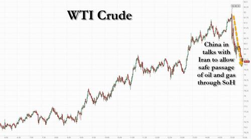 ... before losing steam quick on a Reuters report that that China was in talks with Iran to allow crude oil and Qatari LNG vessels safe passage through the Strait of Hormuz (as we said would happen earlier).