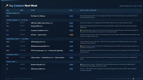 This is the most structurally loaded week of the quarter. The calendar stacks a Q1 close, a Q2 open, and a full employment gauntlet into five sessions, with markets still metabolizing whatever the Fed just delivered..