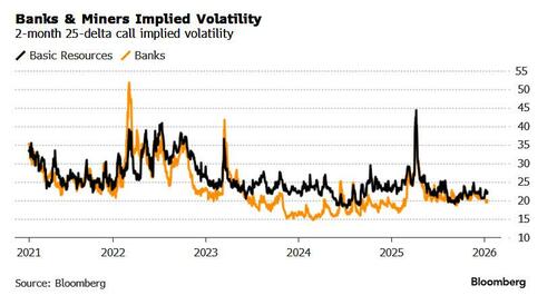 European miners have also caught the attention of derivatives strategists, with upside plays on the Stoxx 600 Basic Resources Index. Barclays strategists wrote in a recent note that fundamentals may improve for the sector, thanks in part to potential Chinese support and demand for AI-led infrastructure. They see call spreads as attractive given the low volatility and flat call skews.