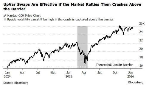Several banks have been pitching so-called upside variance swaps, a bet on volatility rising as long as the underlying asset is above a certain level. Those tend to be profitable when there’s a significant market rally followed by a crash within a set time frame.