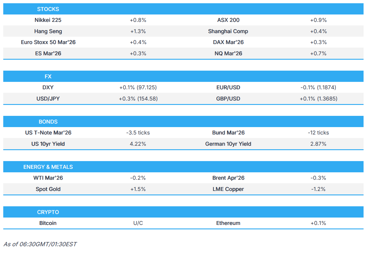 - Hang Seng and Shanghai Comp traded somewhat mixed with firm gains in Hong Kong led by Zijin Mining, which is to buy Canada's Allied Gold for USD 4bln, while the mainland index lagged despite an acceleration in Chinese Industrial Profits and the PBoC's liquidity efforts.