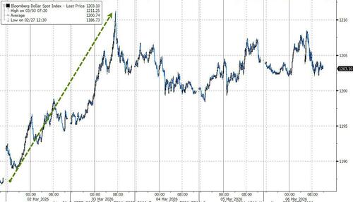 The dollar saw massive safe-haven flows Monday and Tuesday to end with its best weekly gain since Oct 2024...