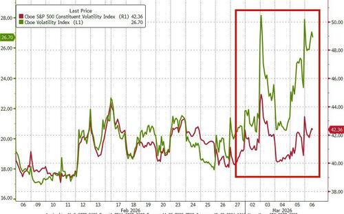 Quite a flip-flop in dispersion this week as correlation-one macro moves dominated with index vol surging more than underlying component vols...