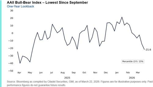 “The conditions for a rally are very high - if geopolitical tensions ease - considering one of the largest short positions on US stocks that we’ve ever seen,” said Scott Rubner, Citadel Securites' head of equity and equity derivatives strategy, but cautioned that it’s not yet a “buy stocks today” call.