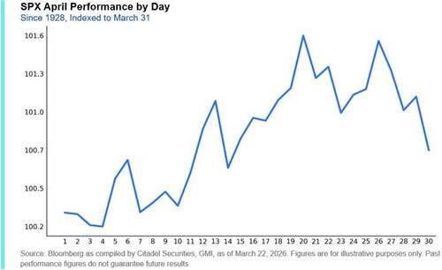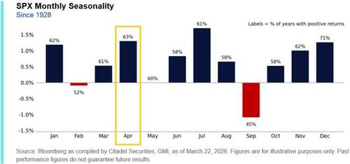 And so finally, Rubner concludes that as key technical and positioning pressures begin to clear, and IF geopolitical tensions ease, April has the potential to be a strong month for US equities. Upside tail risks appear underpriced, and in this type of environment, buyers tend to live higher.