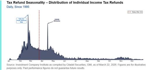 We are in the heart of tax refund season, with 53% of annual refunds issued by April 1st and roughly 75% by April month-end.