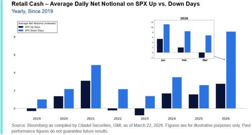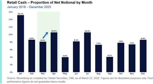 Citadel Securities’ retail flow data shows this has historically coincided with a pickup in retail activity.