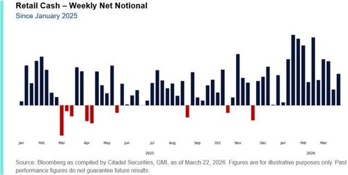 Citadel Securities retail flows show no signs of weakness from retail investors, more of a holding pattern, and willing to continue buying the dip once all clear.