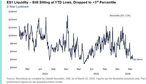 Last week, S&P 500 top-of-book liquidity was in the 3rd percentile over the past two years.