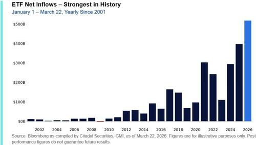 ETF inflows have already reached $518 billion year-to-date, more than 30% ahead of last year and more than 5x the average by this point in the year. In an environment where liquidity remains thin and trading is increasingly concentrated in passive vehicles, these reallocations can have an outsized impact on price action.