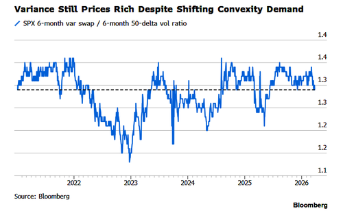 Convexity trades — which capture outsized gains in options during volatility spikes — are falling somewhat out of favor given the speed at which market selloffs have recently reversed, leaving traders scant opportunity to cash in. For now, the perception that there are a number of potential offramps for US President Donald Trump to end the Iran conflict keeps strategists wary of recommending extreme downside hedges.