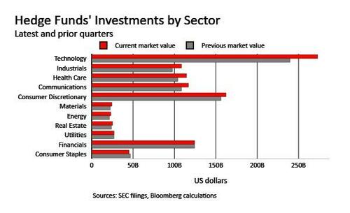 Bloomberg has so far analyzed 13F filings by 909 hedge funds. Their combined holdings amounted to $1.098 trillion, compared with $ 1.021 trillion held by the same funds three months earlier.