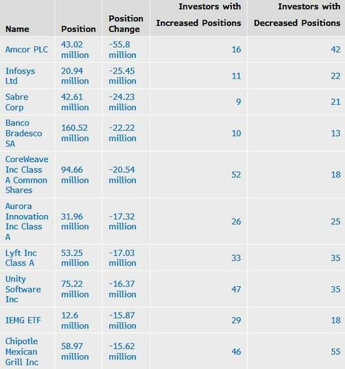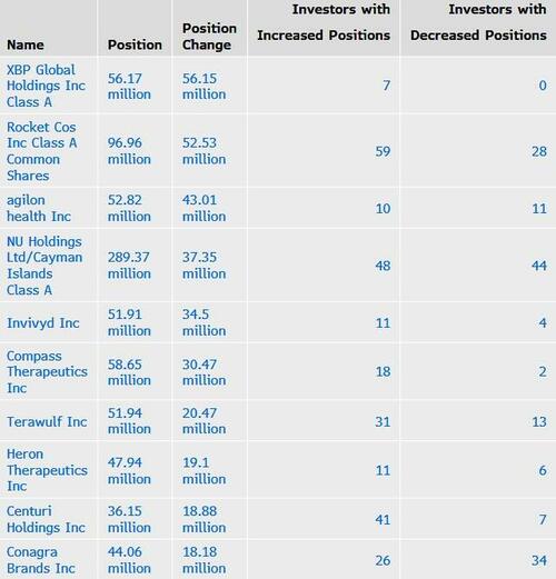 - New: JHX (19 mln shares), KNX (3.7 mln), APG (2.2 mln), SE (1.29 mln), DIS (1.2 mln), SATS (822K), AVGO (667K), NVDA (617K), WING (472K), META (271K), SNPS (157K), MELI (129K) , TDG (31K)