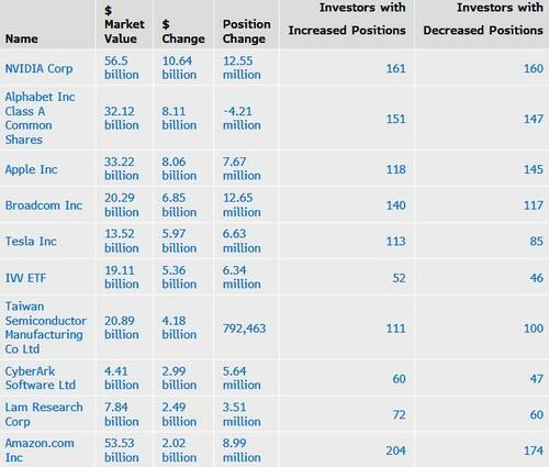 - NVIDIA was the most valuable overall holding at $56.5 billion
